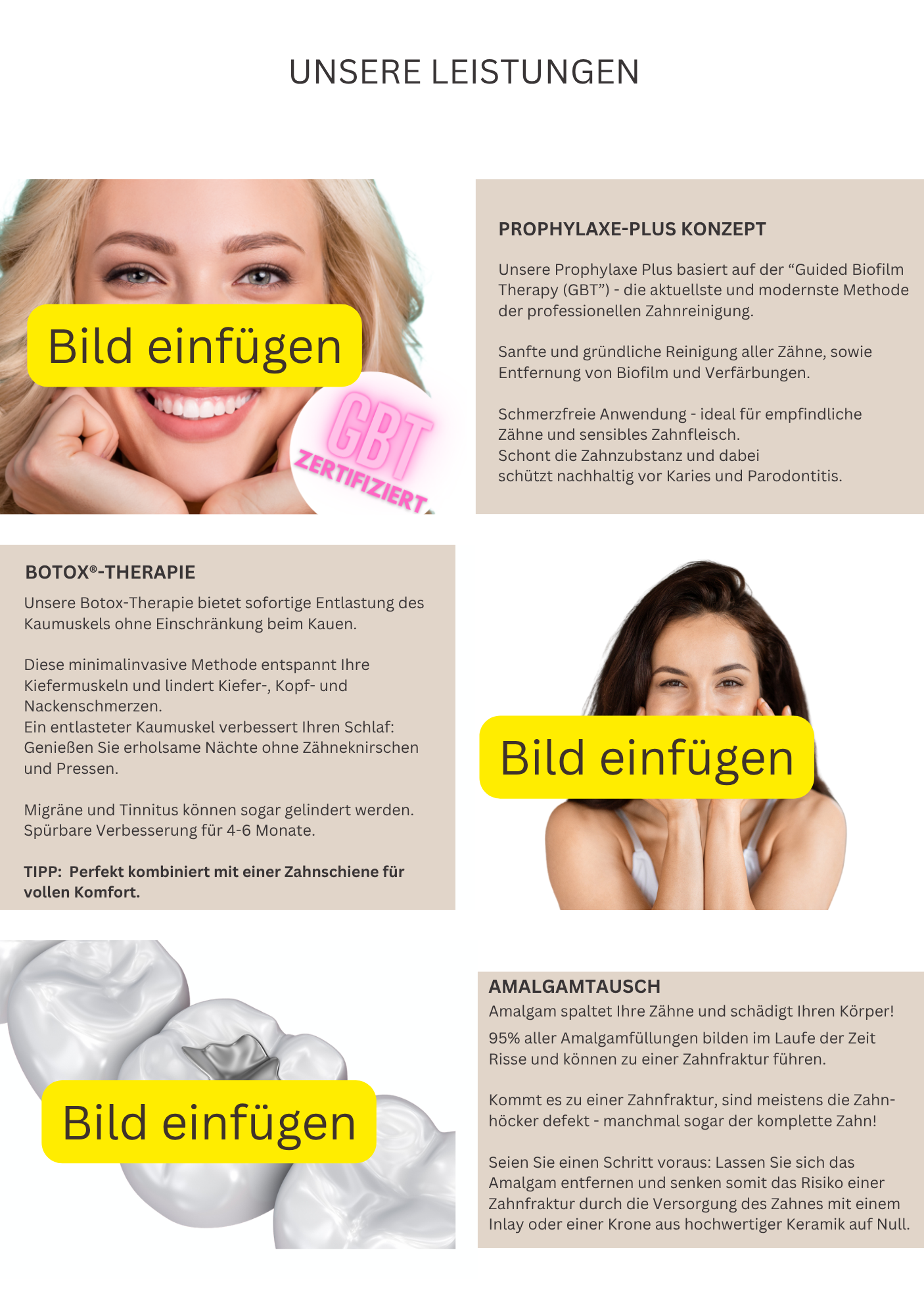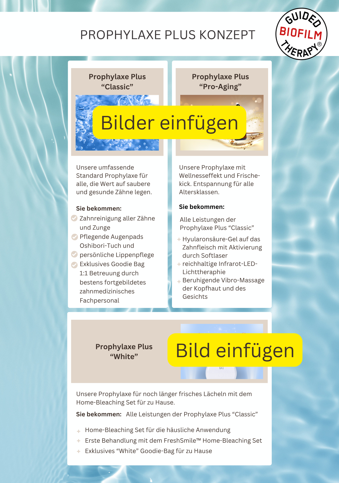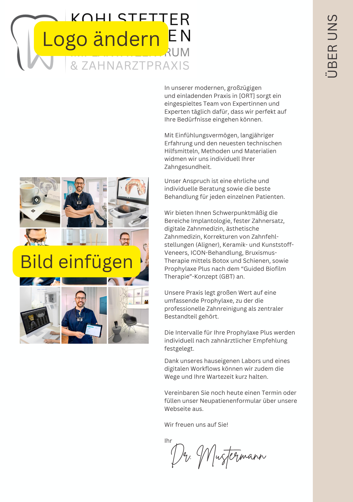 Texte, Fotos, Farben – alles mit wenigen Klicks individualisierbar, so dass es perfekt auf Deine Praxis zugeschnitten ist.