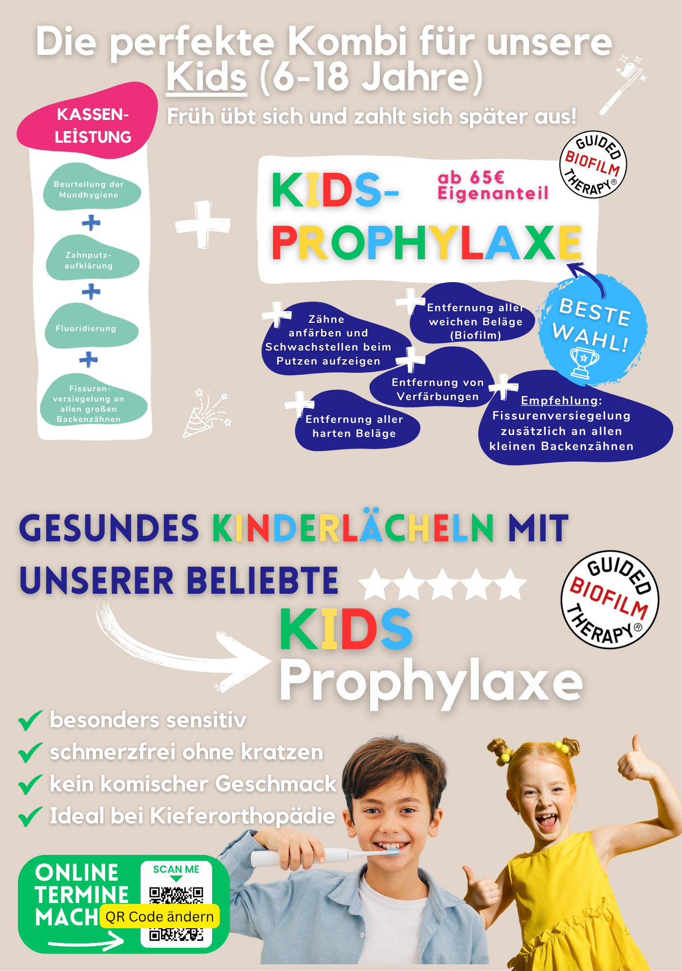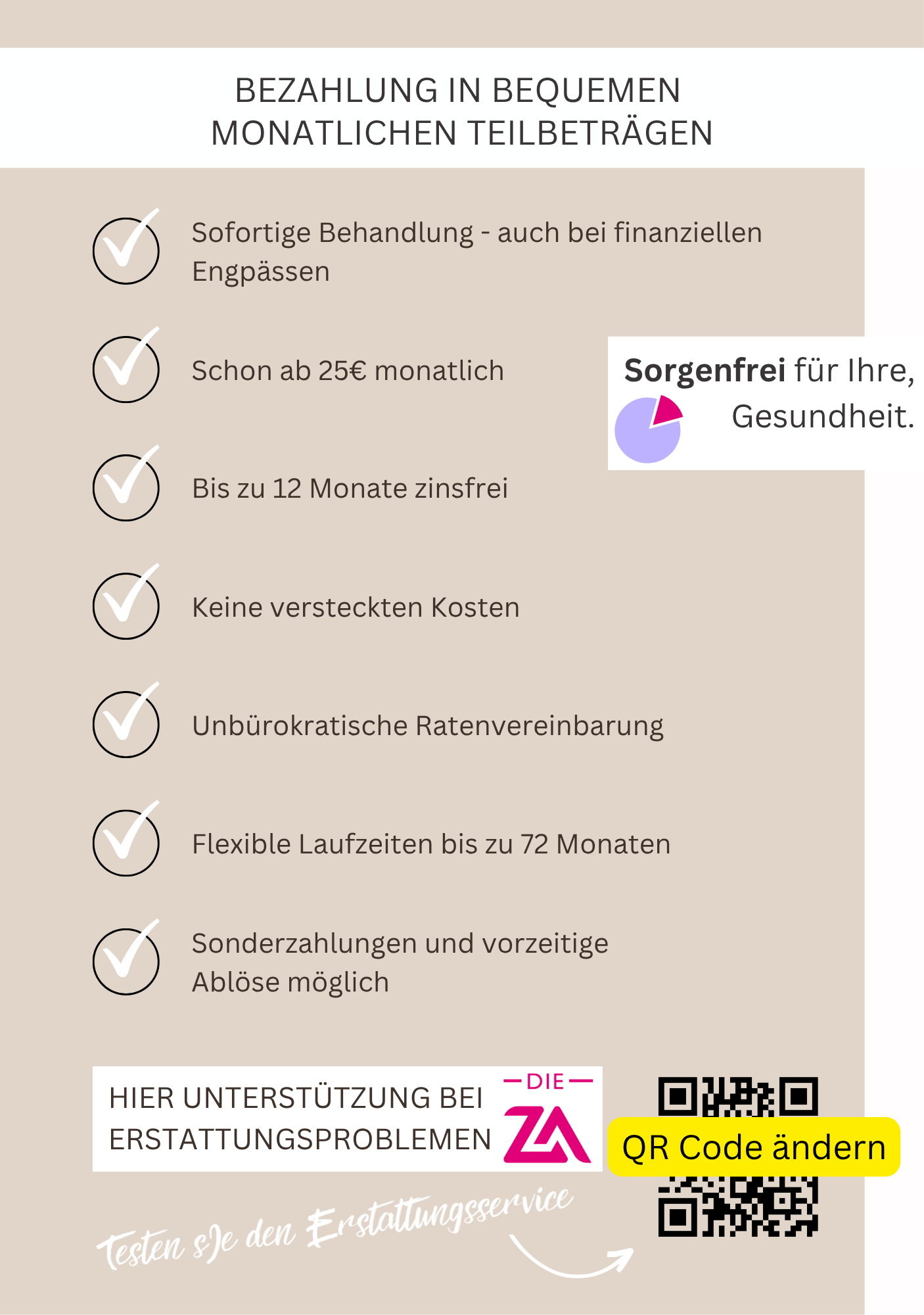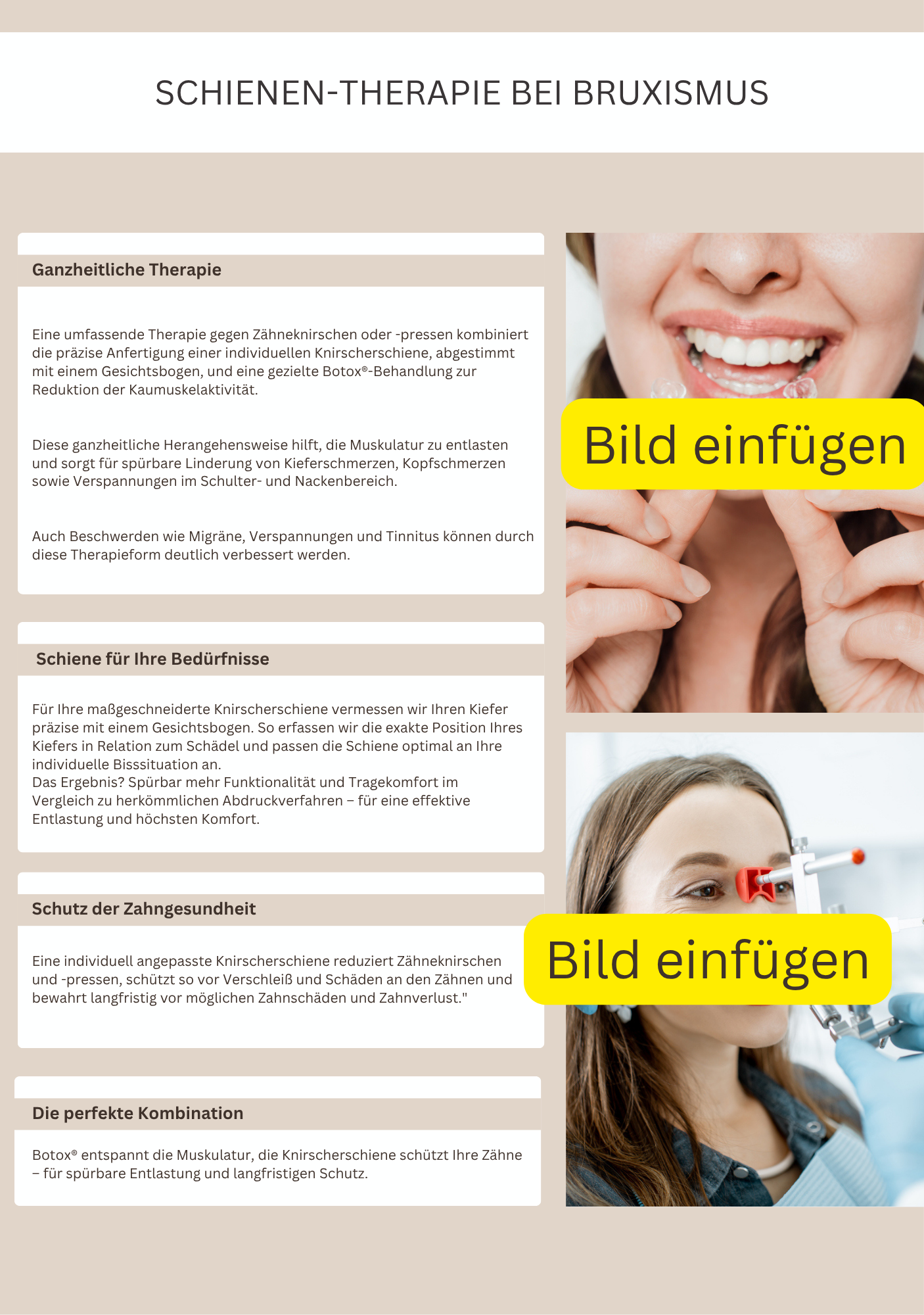 Texte, Fotos, Farben – alles mit wenigen Klicks individualisierbar, so dass es perfekt auf Deine Praxis zugeschnitten ist.