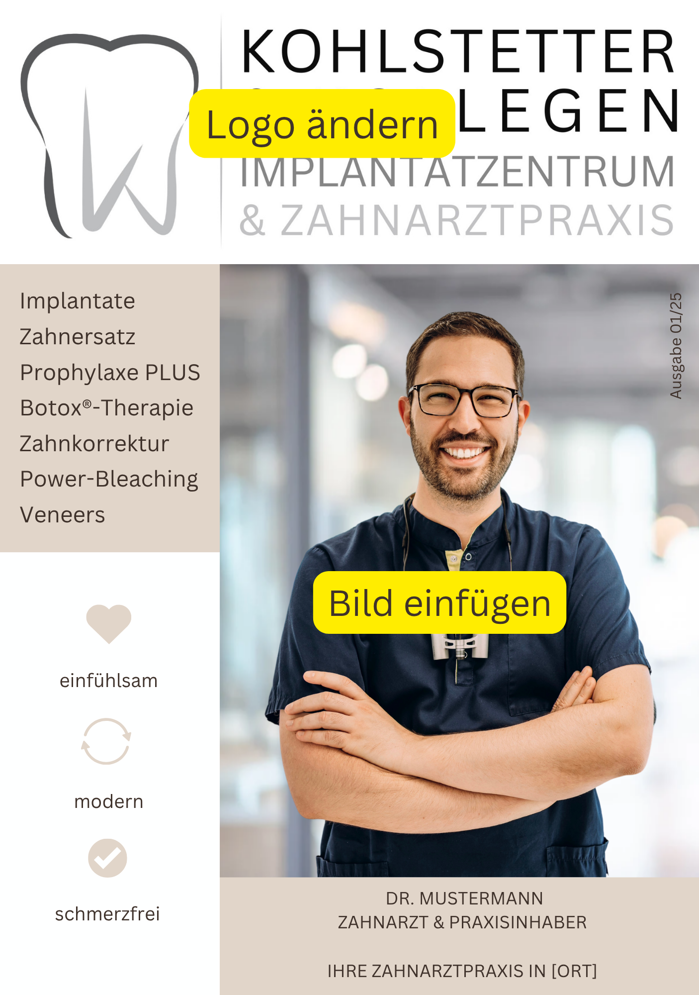 Das Patientenmagazin für Zahnärzte und Ärzte: Fertig gestaltet von einer Canva-Designerin (kein ChatGPT etc.) und sofort anpassbar.